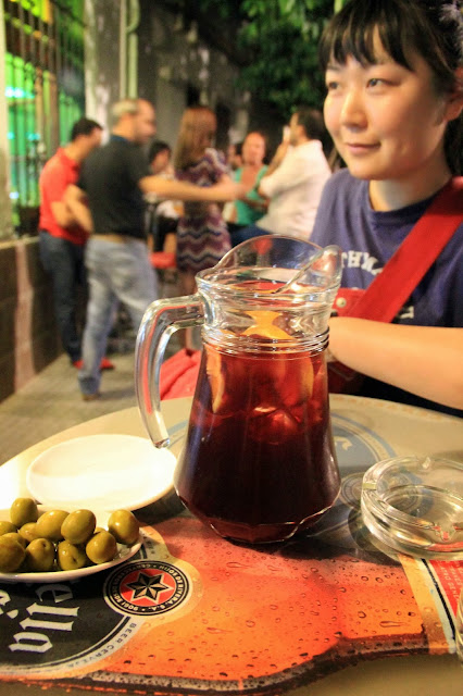 | 店を移動し、1リットルで5ユーロ(650円)のサングリア。やはりうまくて、安いのは、正義だ!! |